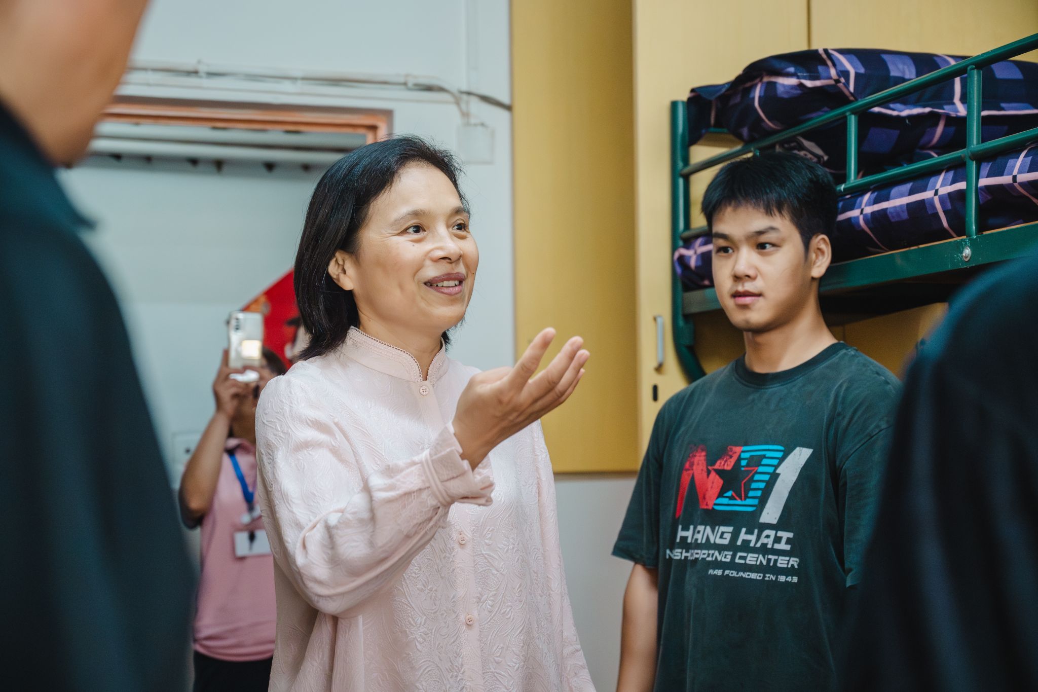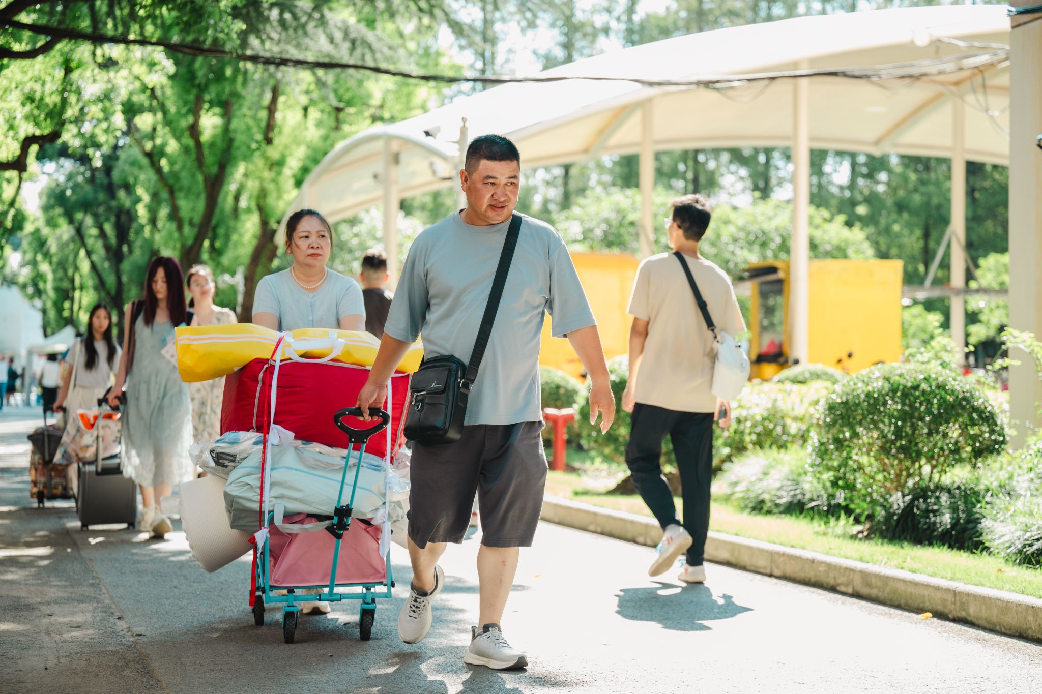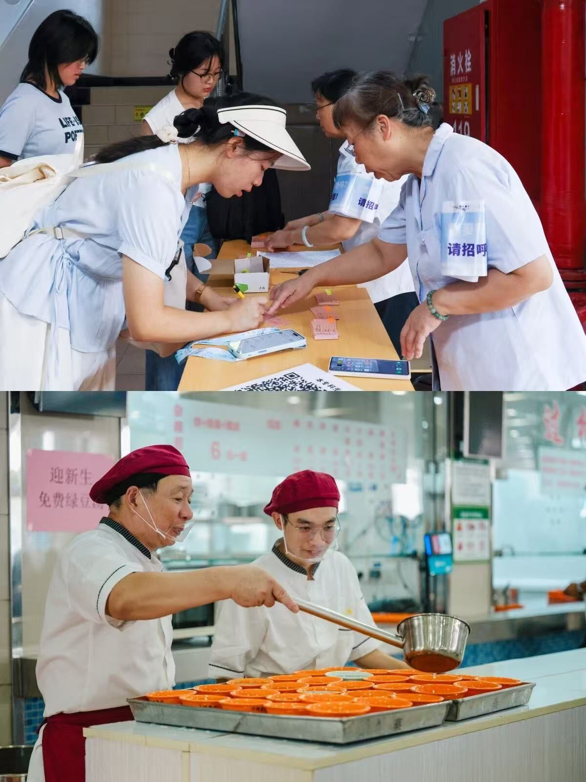 从校门到宿舍,从报到区到休息点,随处可见身着彩色马甲的学生志愿者忙碌的身影。他们穿梭在人群之中,答疑解惑、搬运行李、指引路线,以实际行动传递着伟德人的热情与担当,实现从校门到宿舍全程无忧办理。后勤部门保障人员协同护航:食堂叔叔阿姨准备好暖心解暑绿豆汤,“爱心帮帮车”驾驶员往返穿梭,贴心服务,全力保障新生能顺利入学。