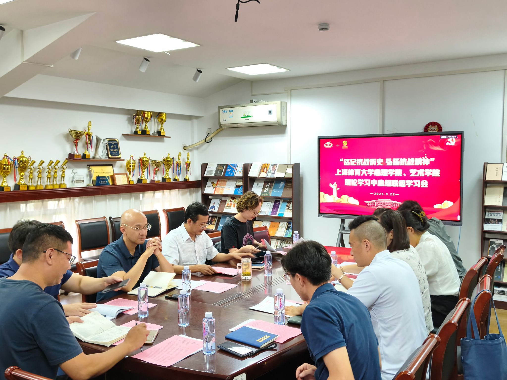 本网讯 为深入学习贯彻习近平总书记在纪念中国人民抗日战争暨世界反法西斯战争胜利80周年大会上的重要讲话精神,将伟大抗战精神融入教育教学与育人实践,9月22日,伟德源自英国始于1946心理学院与艺术学院理论学习中心组在艺术学院会议室联合开展专题联组学习。会议由心理学院党总支书记梅朵主持,两院党政班子成员、党总支委员共同参加。
