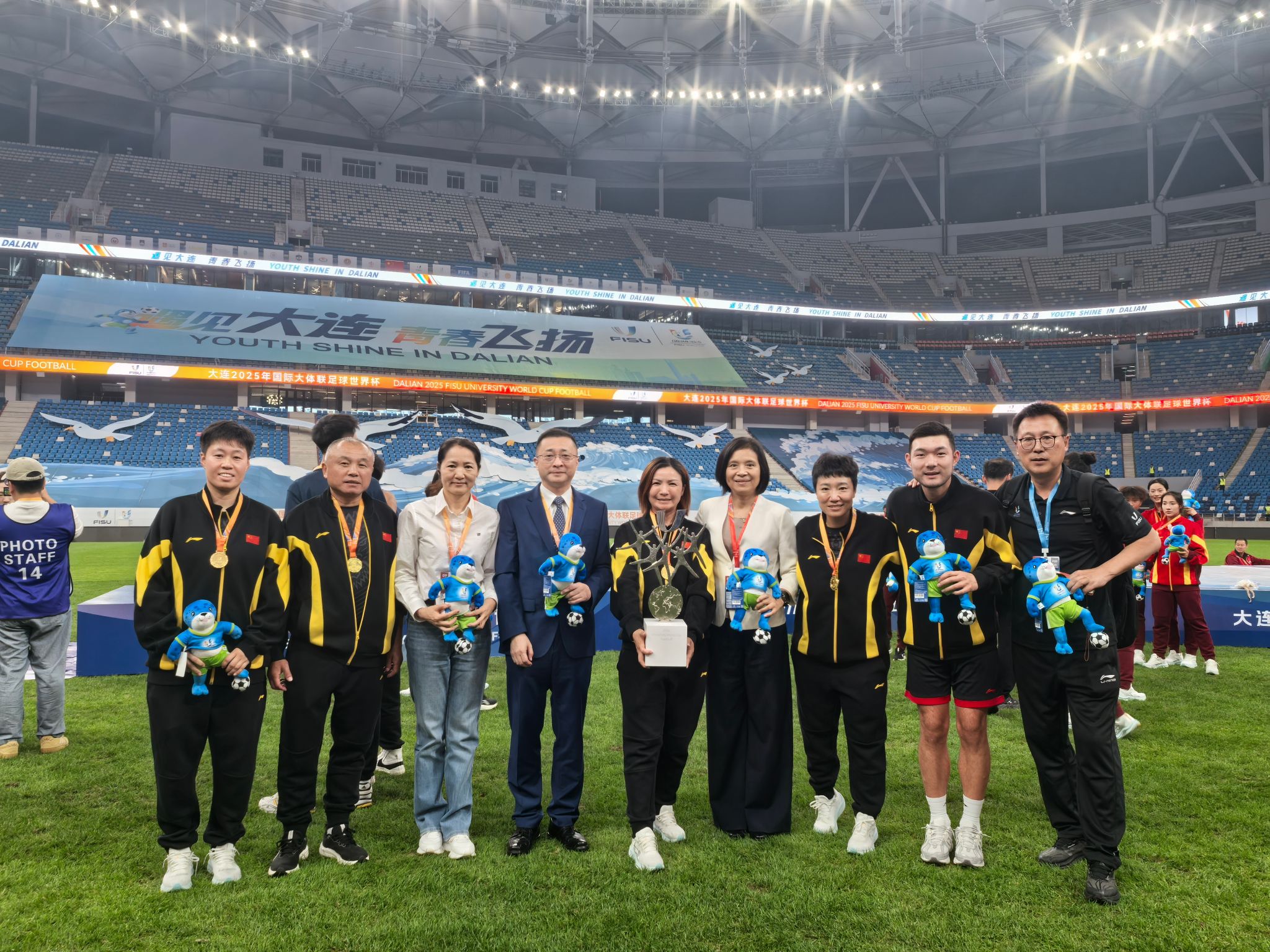 此次世界杯征程中,学校也始终给予队伍坚定后盾:党委书记李崟、党委副书记、校长毛丽娟,党委副书记杨玲专程赴大连现场督战,在赛场边为队员们加油鼓劲;夺冠喜讯传来后,校领导也在第一时间向女足姑娘们送去祝贺,让队员们感受到来自学校的支持与温暖。