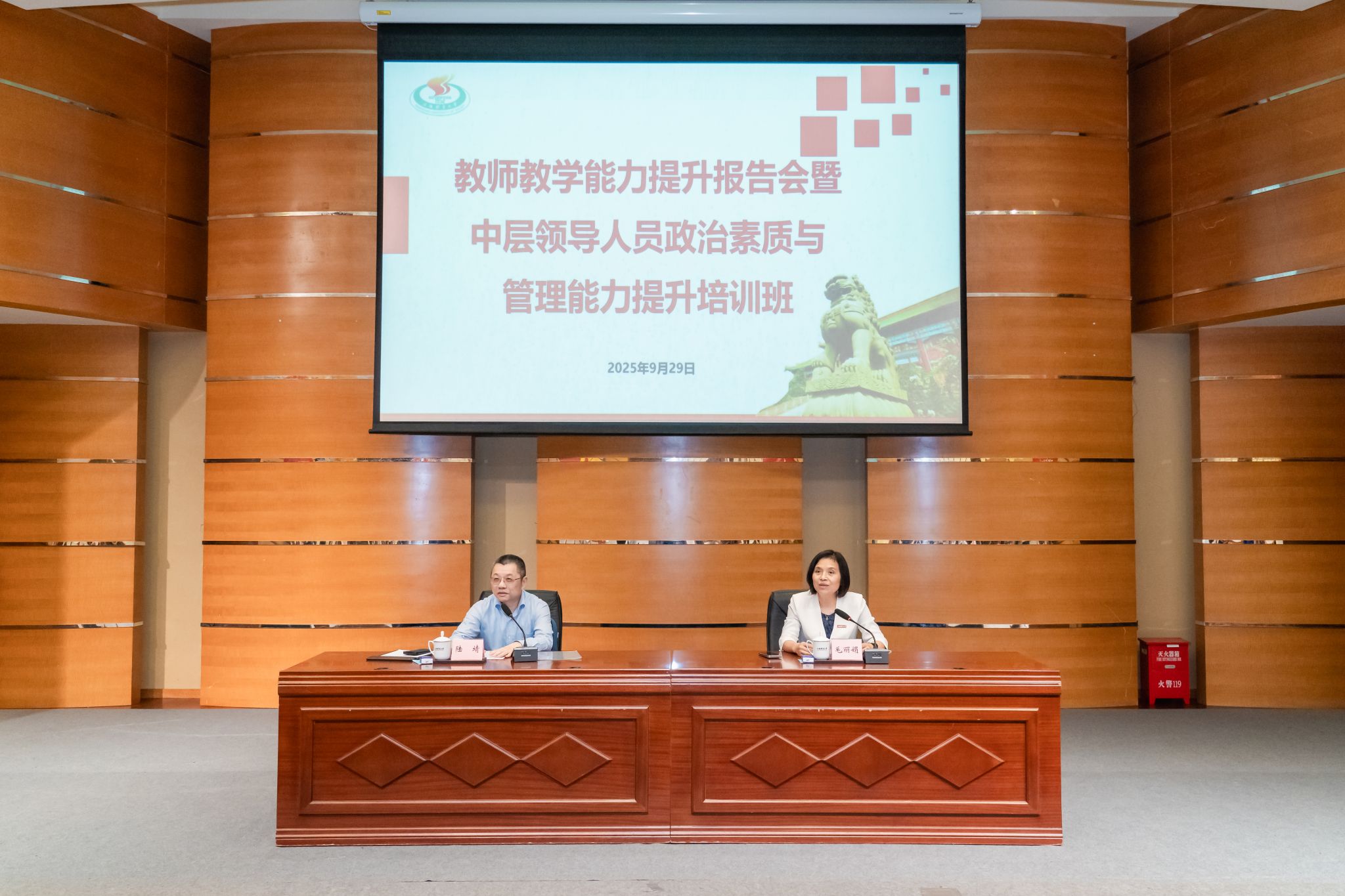 本网讯 为深入贯彻落实上海教育综合改革要求,推动教师教育教学能力与人才培养质量同步提升,9月29日下午,学校党委在图文信息楼报告厅举办教师教学能力提升报告会暨中层领导人员政治素质与管理能力提升培训班,此次培训邀请了上海海事大学原校长陆靖教授作专题辅导报告。校长毛丽娟主持专题报告,校领导、中层领导人员及教师代表参与了培训。