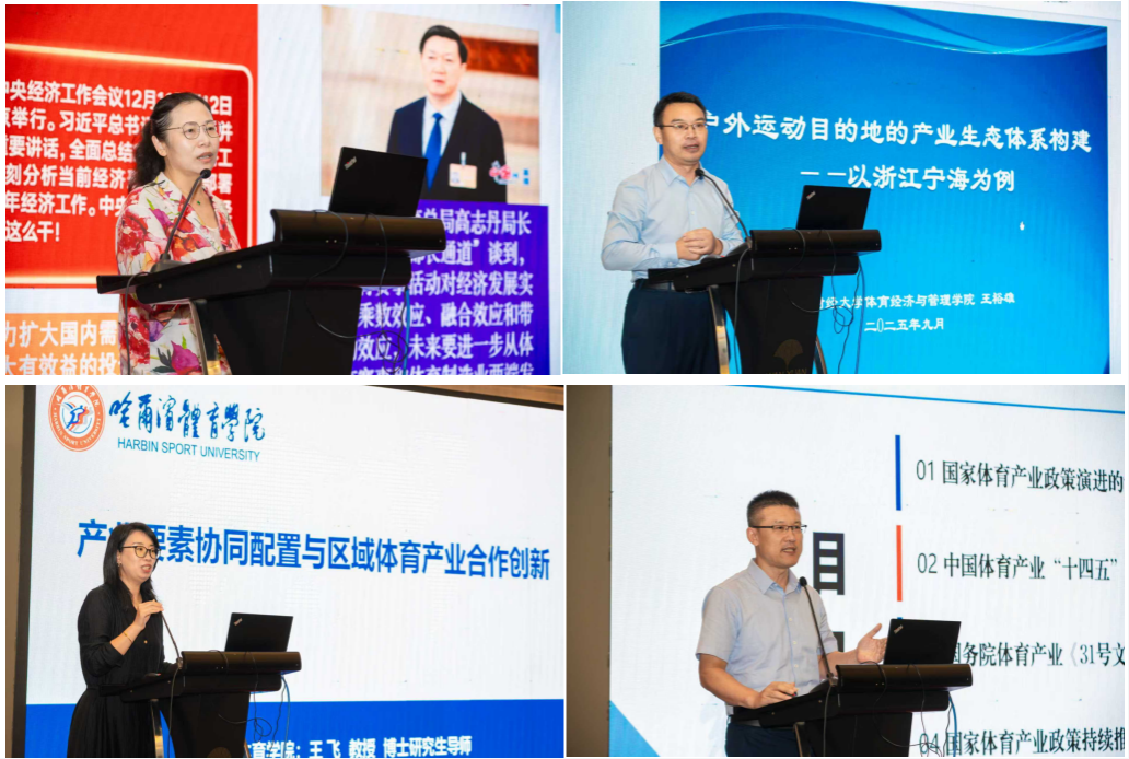 9月27日下午,大会邀请浙江大学国家体育产业研究基地副主任郑芳教授,中央财经大学体育经济研究中心主任王裕雄教授,哈尔滨体育学院体育人文社会学院院长王飞教授和安徽财经大学体育产业管理与发展研究院院长姜同仁教授分别就“赛事经济高质量发展的理论与实践”“户外运动目的地的产业生态体系构建——以浙江宁海为例”“产业要素协同配置与区域体育产业合作创新”和“国家体育产业政策实施的发展成就和进阶路向”做学术交流报告。