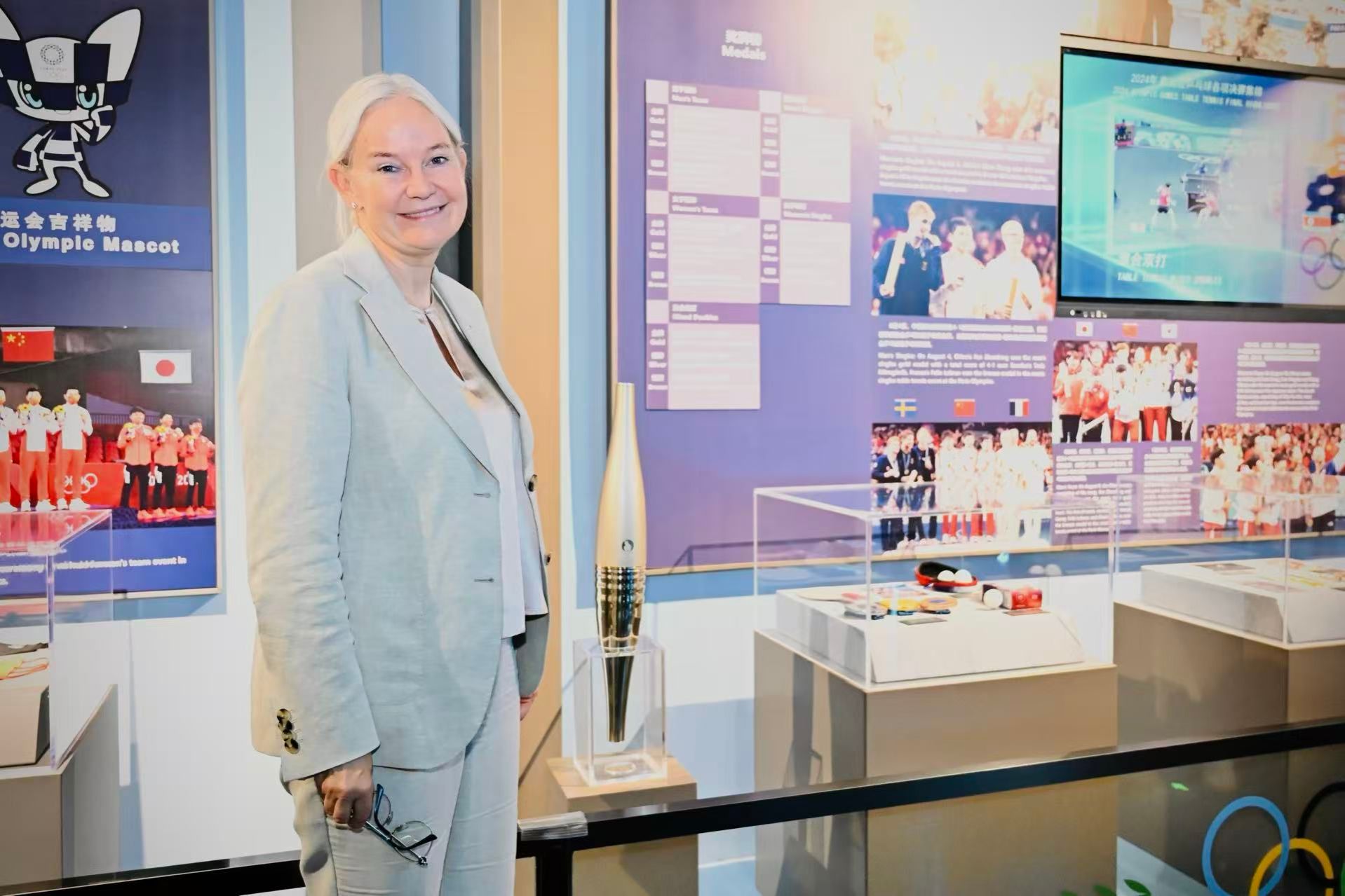 佩特拉·索林于2021年11月当选为国际乒联历史上首位女性主席,并于2023年10月成为国际乒联首位担任国际奥林匹克委员会委员的主席。在任期内,她积极推动以成员协会为中心的治理模式优化,不断加强乒乓球运动的商业开发与全球推广,为项目本身的发展及其更好地融入奥林匹克大家庭作出了重要贡献。此次交接的2024年巴黎奥运会火炬,将为乒博馆的藏品体系增添重要的时代印记。佩特拉·索林此次到访,不仅为乒博馆增加了珍贵展品,更通过面对面的交流达成了双方在体育文化领域的共识,为未来的交流协作注入了更强的动力。