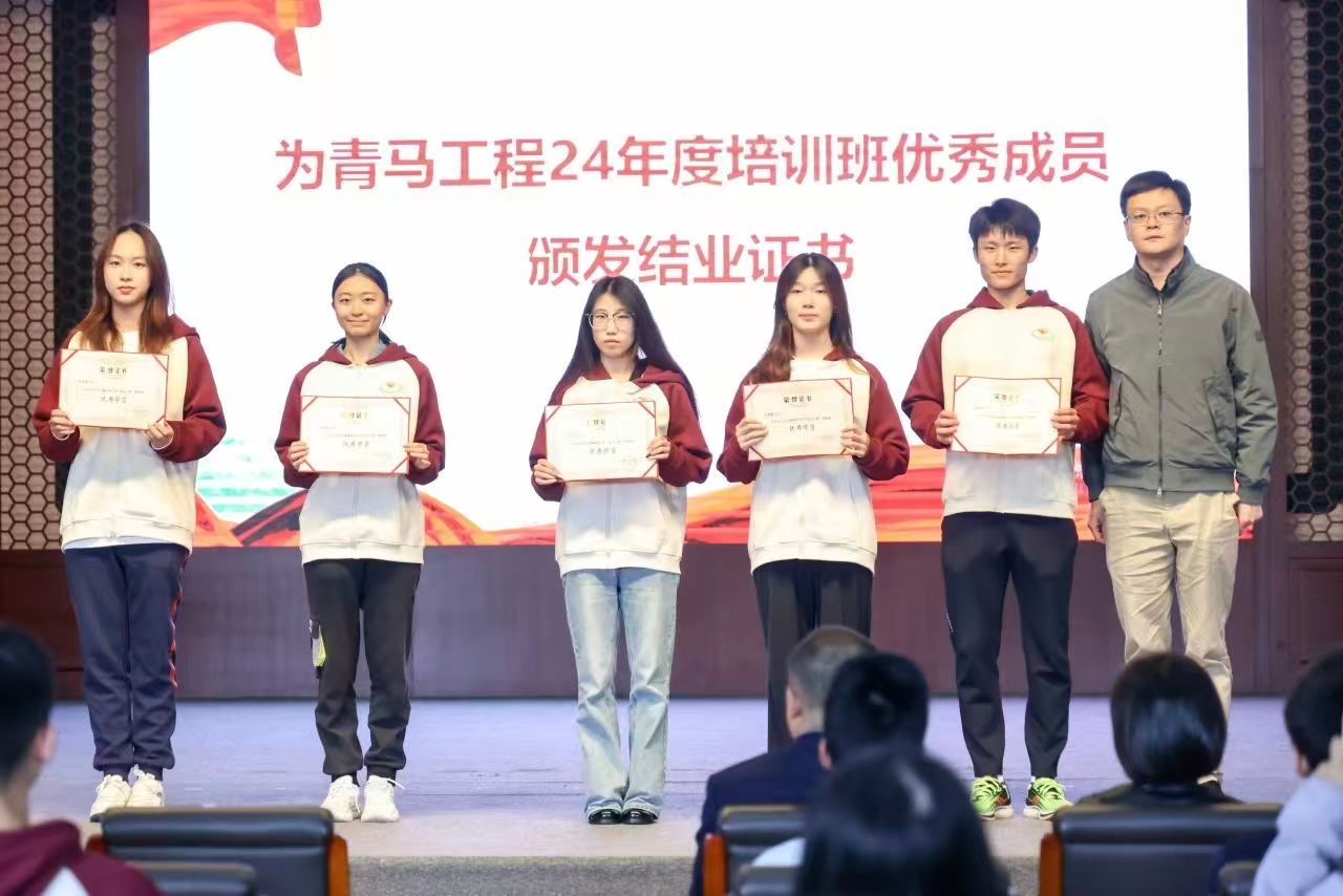 校团委书记、学(研)工部副部长刘佳瑜为青马工程24年度培训班学员代表颁发了结业证书。