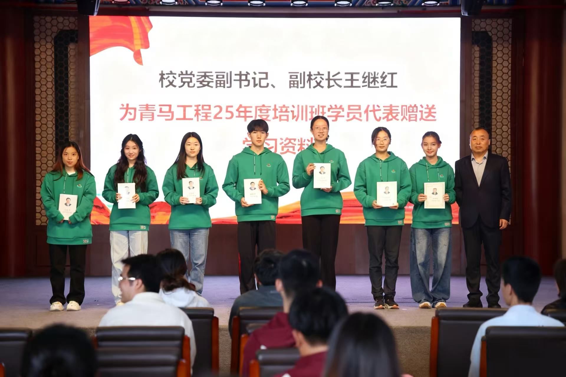最后,校党委副书记、副校长王继红为2025年度青马工程培训班学员代表赠送了学习资料《习近平谈治国理政——第五卷》,勉励新学员们持续学习,认真领悟马克思主义,丰富自身的精神世界。