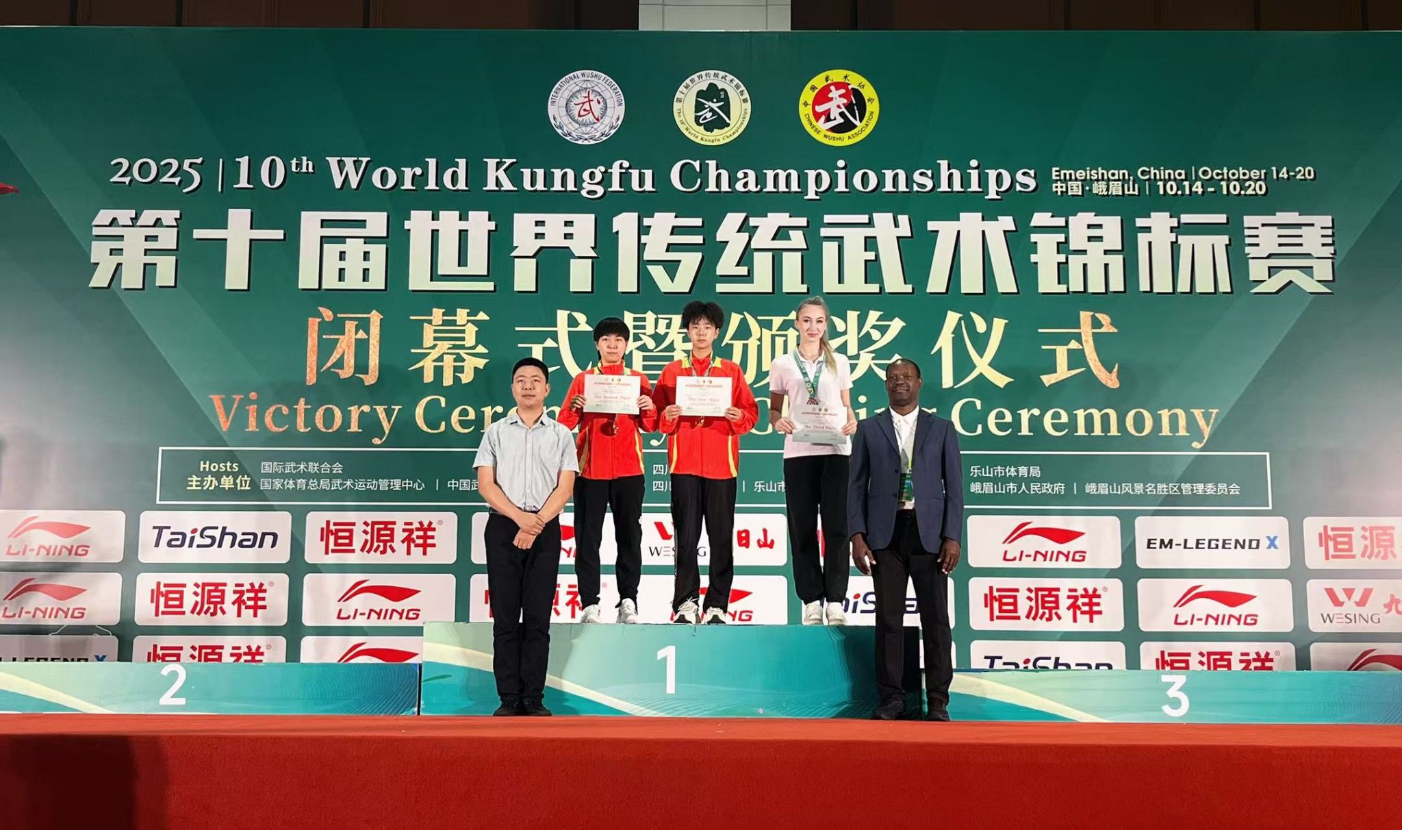 本网讯 第十届世界传统武术锦标赛于2025年10月14日至20日在四川省峨嵋山市举行,来自全球54个国家和地区的5092名运动员、教练员及武术爱好者同场竞技,切磋技艺,以武会友,展现了传统武术在全球发展的蓬勃生机。武术学院2025级武术与民族传统体育专业本科王奔凭借扎实的武术功底与稳定的赛场发挥,夺得了女子单项器械套路直剑(武当剑)D组冠军和女子徒手套路其他套路D组季军。同时,王奔还与队友携手,助力中国队获得了集体拳术项目的冠军。