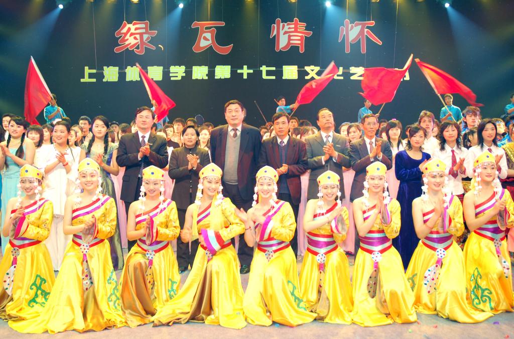 | 腊梅透春意,金猪踏歌来。1月27日晚,综合馆内张灯结彩,鲜花锦簇传递出浓郁的喜庆气氛,绿瓦情怀――上海体育学院第十七届艺术节闭幕式暨迎新春晚会在 这夜、在这里上演。党委书记虞丽娟、院长姚颂平、副书记、副院长戴健、副书记庄起民、副院长王义林、章建成与离退休老同志和师生代表近1500人齐聚一 堂,辞旧迎新,共庆新春佳节的到来。演出开始前,副书记、副院长戴健回顾了一年来我院校园文化建设的情况,并代表学校向师生员工、离退休老同志们致以节日 的亲切问候。虞丽娟书记宣布艺术节闭幕式演出暨迎新春晚会开始。 水仙吐芳,金桔垂枝,晚会现场其乐融融,洋溢着浓浓的春意。包括院领导在内的机关教师们用脍炙人口的《我的祖国》、《茉莉花》唱出了对祖国的深深情怀。青 春动感无极限,活力新春又一年,曾经获得上海市运动会金牌的健美操表演《放飞青春》展现了绿瓦学子的青春活力。后勤服务中心带来的踢踏舞《体之炫》,让上 体人看到了后勤员工那颗激情澎湃的心。离退休教师们的健身球表演《夕阳红》,一招一式,有板有眼,诠释着他们积极健康的生活态度。