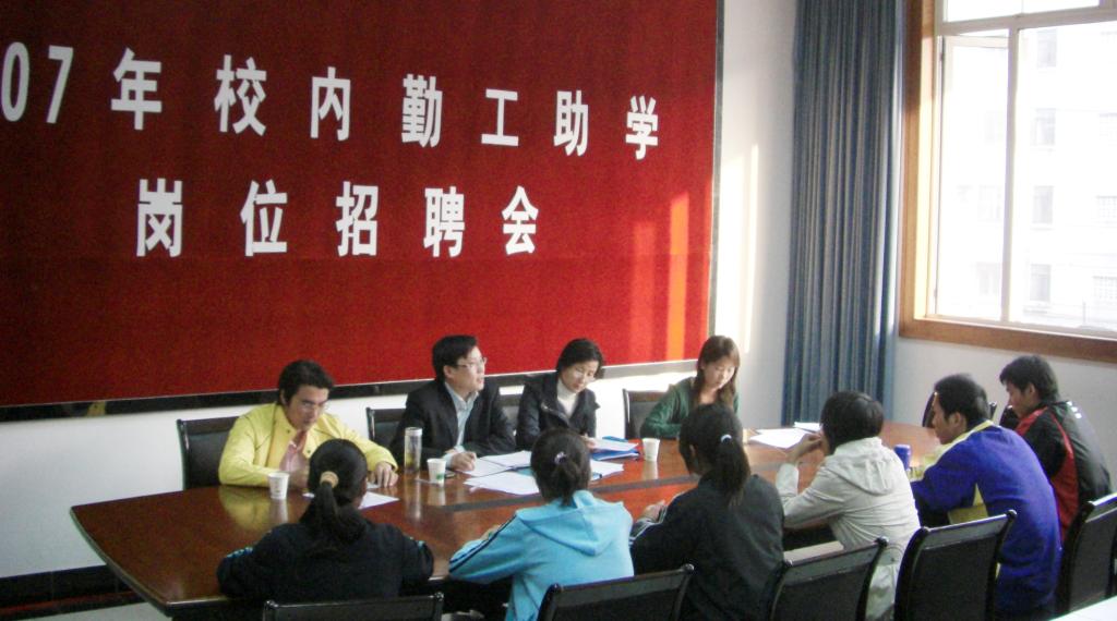 | 为进一步落实我院“帮困助学”工作,切实减轻家庭经济困难学生的生活压力,我院于10月21日下午在活动中心二楼会议室举行了2007年校内外勤工助学岗位招聘会,院档案馆廖萍,学工部顾郑军,综合管理办公室丁应青等老师应邀参加了本次招聘会的面试工作。 本次招聘会本着公开、公正、公平的原则,联合校内用工部门老师一起参与面试工作,针对2007年级家庭经济困难学生推出了图文信息楼值班、档案管理,餐厅的洗碗工等29 个校内勤工助学和20个校外勤工助学岗位。此次招聘会共吸引了120余名学生参加,招聘现场气氛火爆,应聘学生积极回答老师们提问,纷纷表示会在工作中吃苦耐劳,锻炼能力,学会学习。同时也感谢学校、社会能提供一个自立自强的机会,让他们学会在逆境中成长。