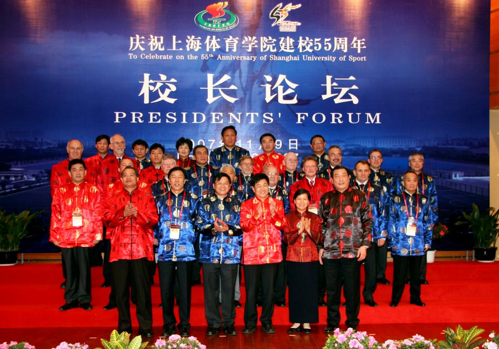 | 为庆祝我院建校55周年,作为校庆活动周重要活动之一的校长论坛,于2007年11月9日下午在图文信息楼报告厅隆重举行。来自德国、芬兰、美国、俄罗斯、乌克兰、日本、韩国、越南和中国台北、香港、澳门等国内外40余所体育大学的校长们汇聚绿瓦,畅谈全球化话语下的体育高等教育发展。 在校长论坛开幕仪式上,各国体育大学校长们身着富有浓郁中国民族色彩的唐装,在院长姚颂平教授的介绍声中,依次走上主席台,宾主合影留念。随后,党委书记虞丽娟教授发表了热情洋溢的欢迎讲话,国家体育总局科教司蒋志学司长、教育部体卫艺司杨贵仁司长也到会致辞并预祝校长论坛圆满成功。