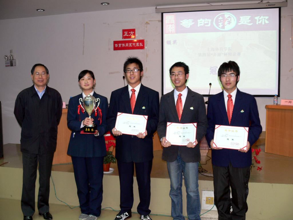 最后,经济管理学院代表队再拔头筹,赢得了此次辩论赛的冠军,体育休闲系代表队获亚军,其正方四辩何涛获“最佳辩手”。体育教育训练学院运动训练专业代表队和运动科学学院代表队获季军。