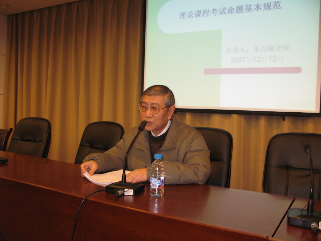 12月12日下午3点,我院在绿瓦大楼西报告厅,由人事处、质管办举办了题为《理论课程考试命题基本规范》的讲座,讲座由质管办顾问朱百顺老师主讲。分管教学的系(院)领导,教研室正副主任、课程负责人出席了此次培训讲座。