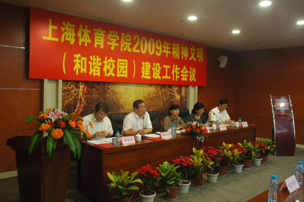 2009年6月10日下午,以“迎世博盛会、建和谐校园、促科学发展”为主题,我院在图文信息楼第二会议室隆重召开2009年精神文明(和谐校园)建设工作会议。上海市教卫党委宣传处副处长、文明办主任劳晓云以及学院党政领导出席,全体中层干部、先进集体和个人代表、思政教研部教师、辅导员、师生代表约百余人参加了此次大会,会议由上海体育学院院长姚颂平主持。