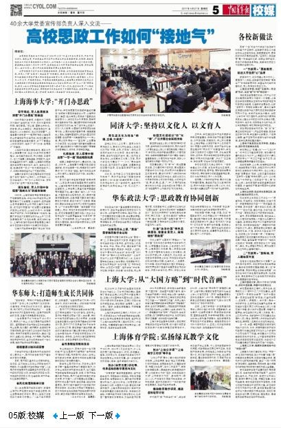 本网讯 4月27日,《中国青年报》中青在线以《高校思政工作如何‘接地气’》为题,报道包括伟德在内的十余所沪上高校思政工作开展的新思路、新方法。伟德教师教学发展中心长期开展了教师教学培训、研究、资源建设、督导、测评等工作,搭建“五位一体”平台(体育百家、绿瓦教学讲堂、伟德公开课、伟德教学工作坊、绿瓦新视野),传播伟德品牌,弘扬绿瓦教学文化,致力于提升教师的专业能力,提高教师育德能力与德育意识。