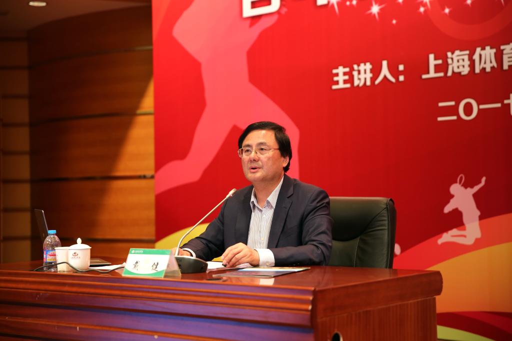 本网讯 5月3日下午,上海体育学院“体育强国”系列课程第一讲在图文信息楼报告厅开讲,党委书记戴健教授主讲“百年奥运与民族复兴”。来自全校300余名学生,部分思政课教师、辅导员和党政工作者聆听了课程。